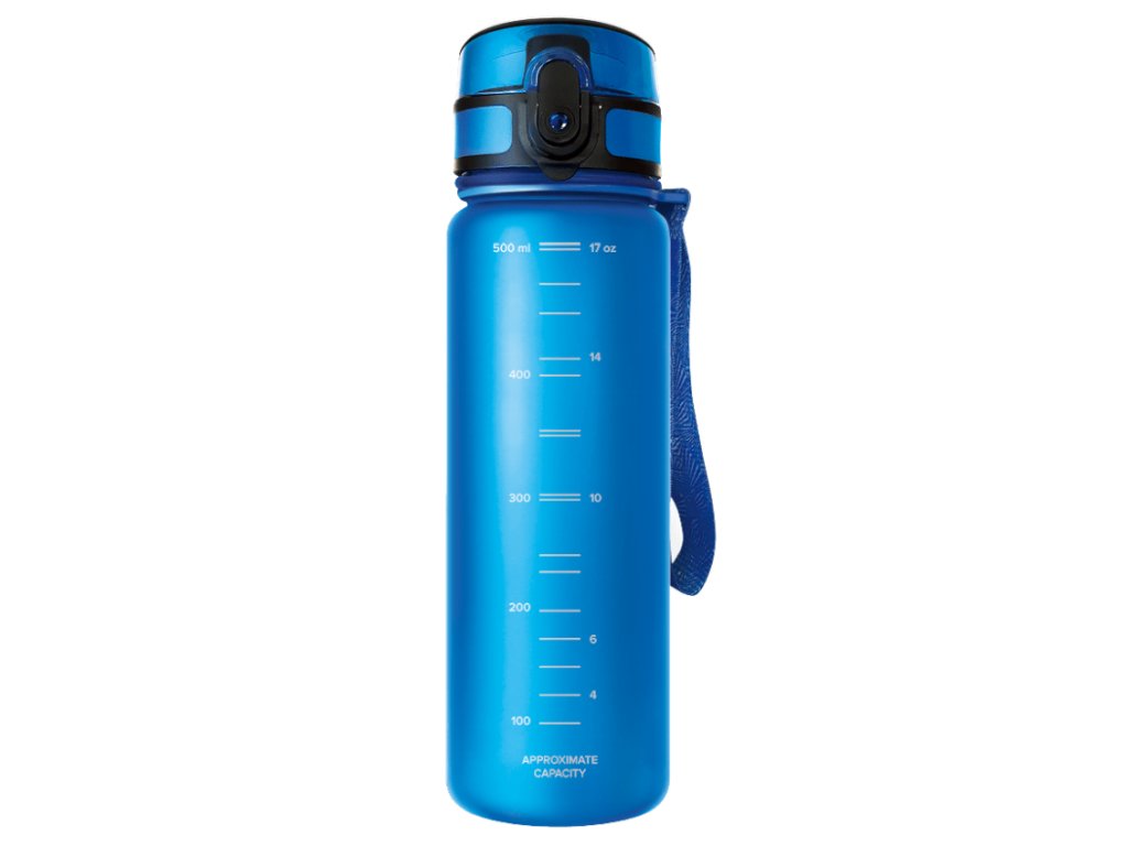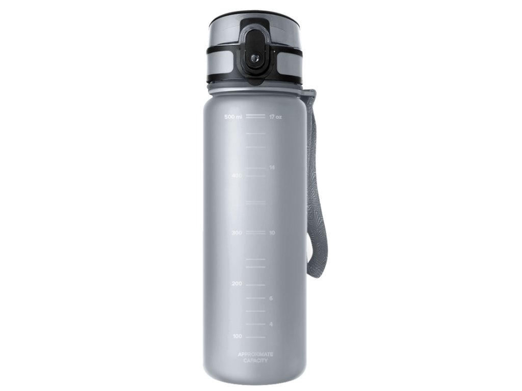 Povrch lahve je pokrytý matným, sametovým potahem, který je příjemný na dotek a snižuje riziko vyklouznutí, i když máte mokré ruce. Má značení objemu v mililitrech a uncích, což usnadňuje sledování denního příjmu vody. Láhev je navíc vybavena praktickým širokým popruhem, který usnadňuje držení láhve a zajišťuje bezpečnou manipulaci. Speciální uzávěr brání nechtěnému otevření a rozlití vody.