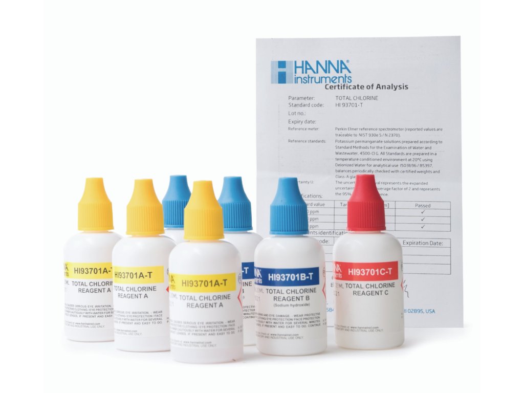 Kapalné DPD reagencie určené pro fotometrické stanovení celkového chloru ve vodě. Vhodné pro pitnou i bazénovou vodu s rozsahem stanovení 0 až 5,00 mg/l Cl2.