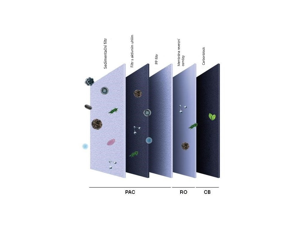 | Systém filtrace | membrána reverzní osmózy |