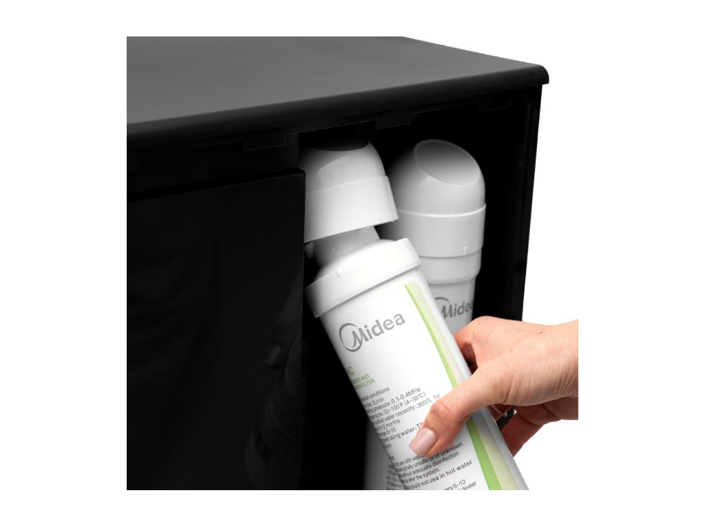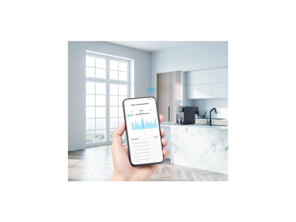 Zařízení nabízí dotykové ovládání, indikátor výměny filtrů, dětský zámek a ECO režim, který v tmavém prostředí automaticky vypíná funkci ohřevu. K dispozici je také možnost ovládání přes mobilní aplikaci.