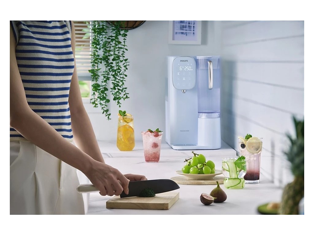 Výdejník vody Philips ADD6912 HCA přináší do domácností revoluční způsob získávání čisté a chutné vody díky pokročilé technologii reverzní osmózy s patentovanou membránou Aquaporin Inside®. Tato technologie účinně filtruje nečistoty až do velikosti 0,0001 mikronu, včetně bakterií, virů, pesticidů, těžkých kovů, chlóru, VOCs a dalších škodlivých látek. Díky tomu máte vždy k dispozici vodu vysoké kvality, která je ideální pro pití, vaření i přípravu nápojů.