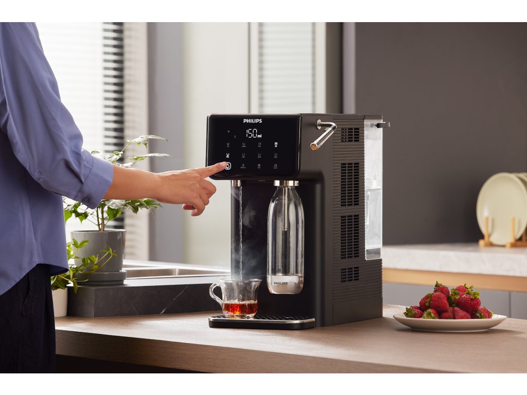 Nabízí rychlou přípravu čerstvé horké vody během několika sekund. Při zvolení teplého nápoje je vybaven bezpečnostní pojistkou proti opaření.