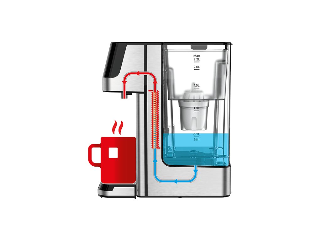 Nabízí rychlou přípravu čerstvé horké vody během několika sekund. Na výběr máte z 6 možností: pokojová, 40°C, 70°C, 80°C, 90°C a 100 °C. Je tedy vhodný například pro přípravu čaje, kávy nebo dětských nápojů. Také je vybaven bezpečnostní pojistkou proti opaření.