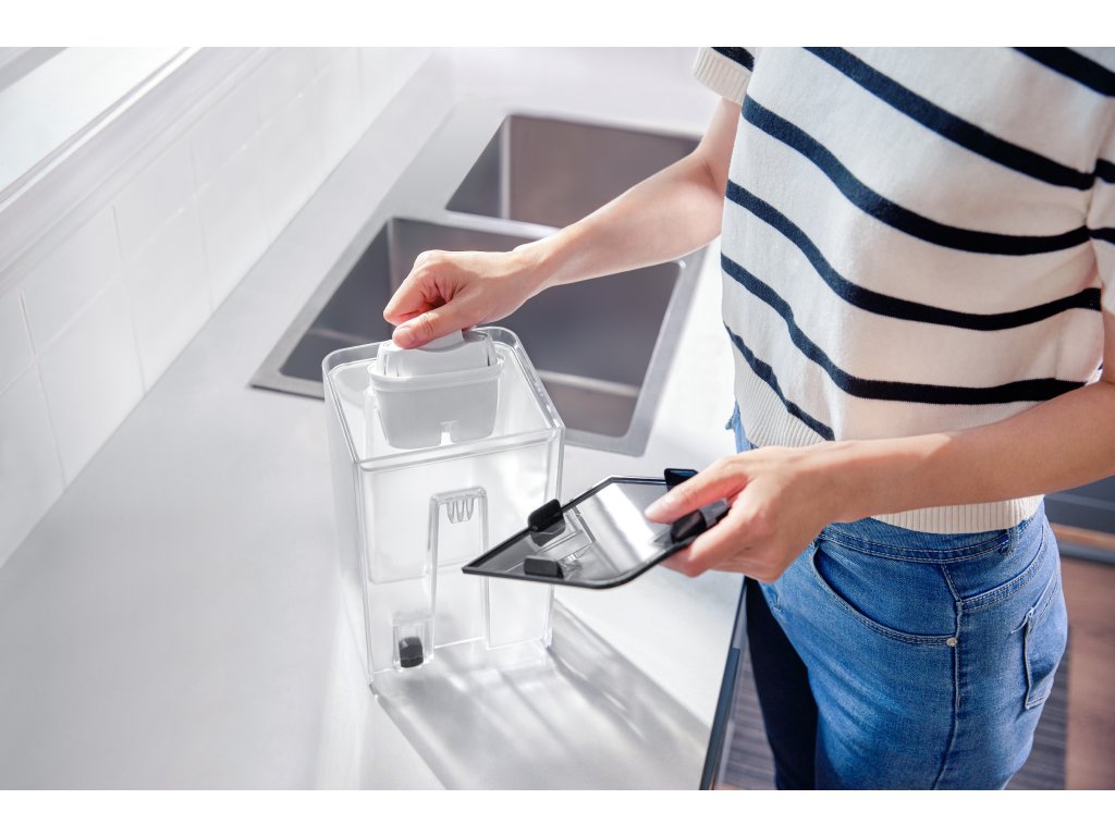 Je vybaven pokročilým filtrem Micro X-Clean, který odstraňuje chlór, vodní kámen, těžké kovy a další znečišťující látky čistotu vody. Indikátor životnosti filtru upozorní na nutnost jeho výměny.